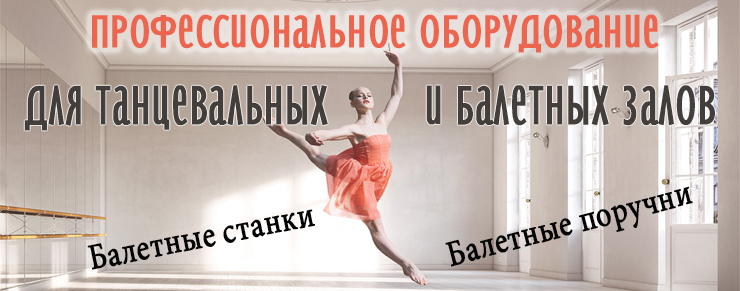 Для студий танцев – балетные станки, поручни (жерди), станок для растяжки;