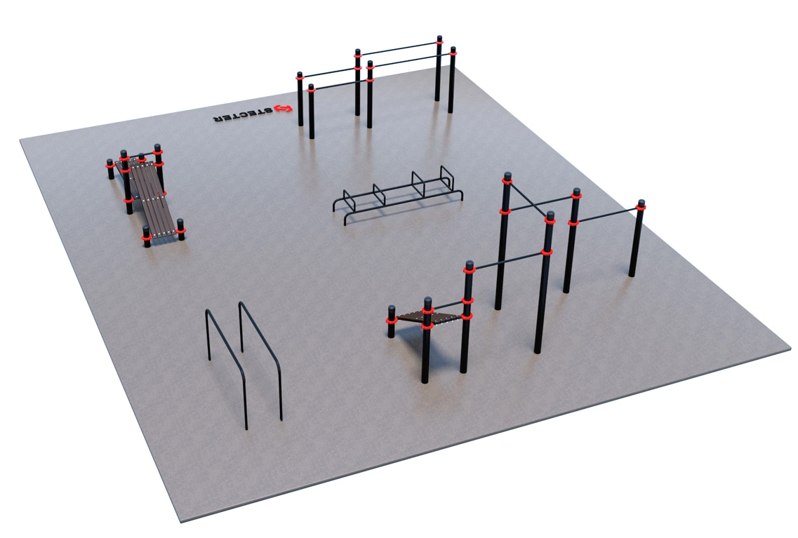 Данный проект парковой площадки укомплектован спортивными комплексами: