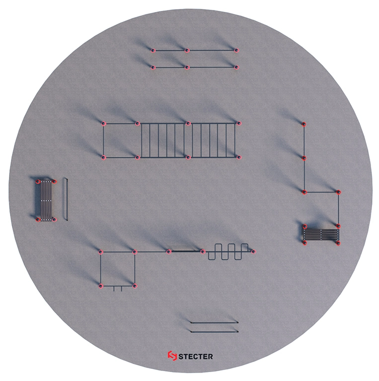 Данный проект парковой площадки укомплектован спортивными комплексами: