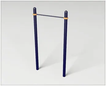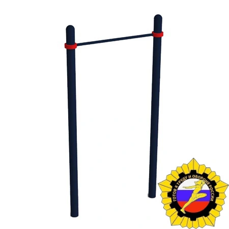 Спортивный снаряд состоит из двух вертикальных опорных столбов, изготовленных из металлических труб, высотой 2 600 мм. Сверху стойки закрыты металлическими полусферами. Горизонтальная перекладина длиной 1 200 мм размещена на высоте 2 400 мм от поверхности основания и фиксируется при помощи металлических хомутов. Тренажер отвечает всем требованиям по сдаче норм ГТО!