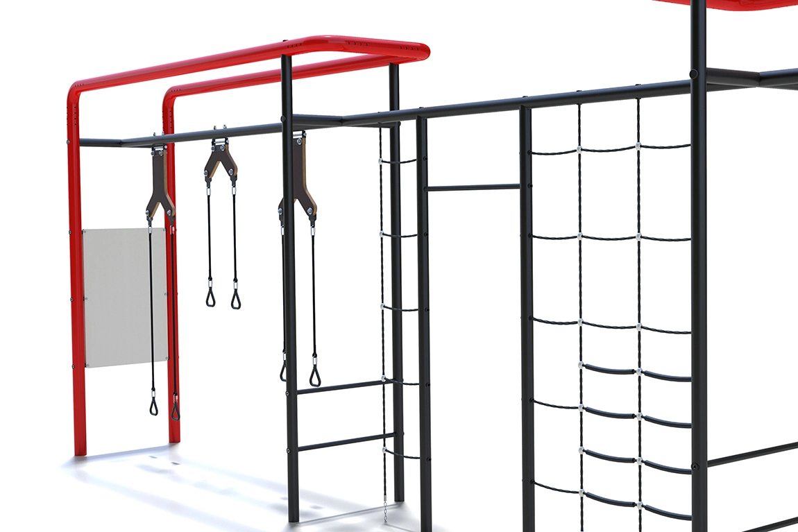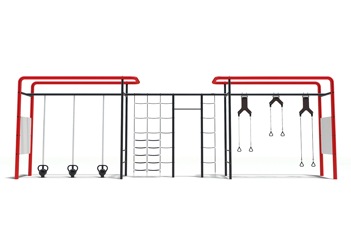 Уличный комплекс с функциональными петлями, сетью, турником и гирями