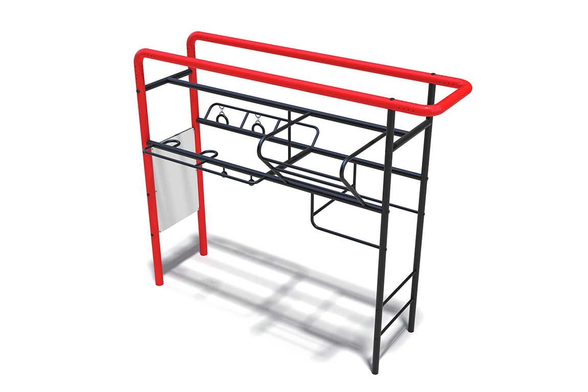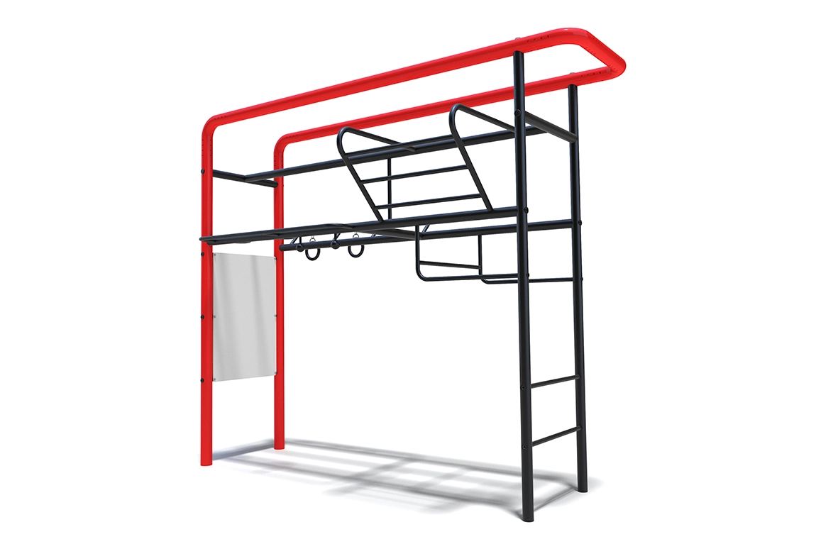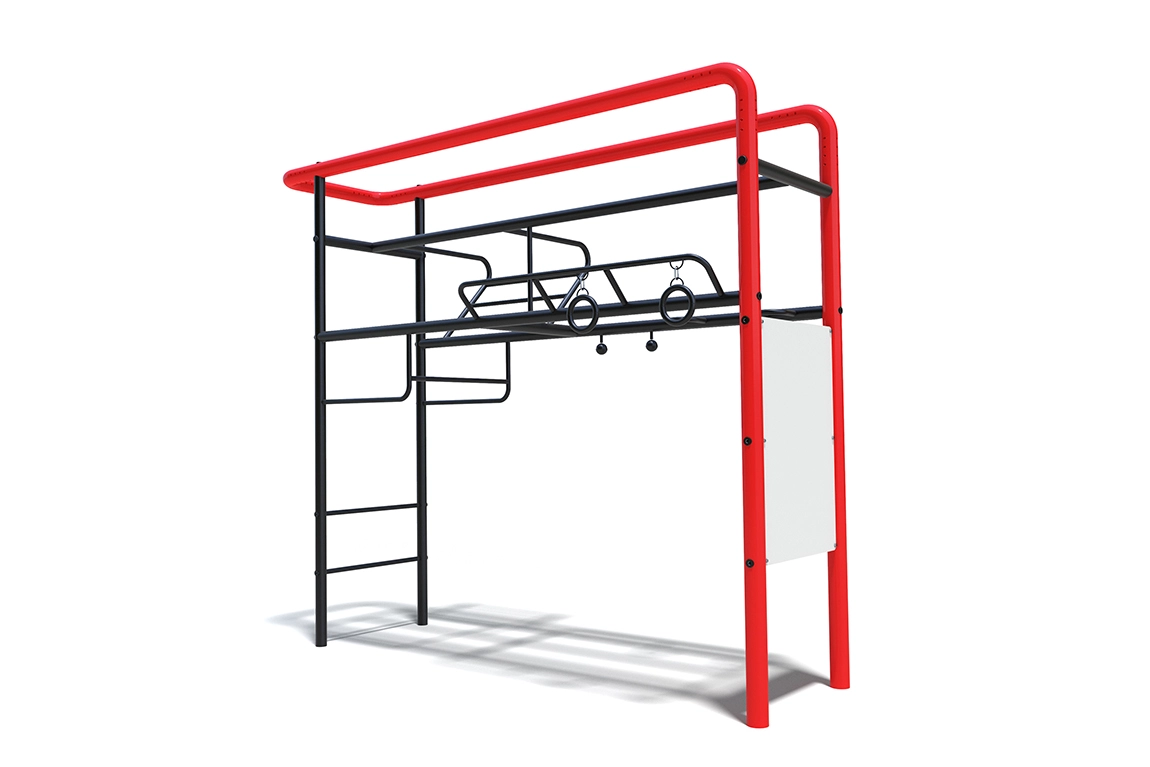 Уличный спортивный тренировочный комплекс для подтягиваний с различными вариантами хватов. Помимо классических прямых и обратных хватов на горизонтальных турниках у Вас появляется возможность значительно увеличить силу хвата подтягиваясь на сферах. Подтягивания на гимнастических кольцах дополнительно подключат в упражнения мышцы стабилизаторы, что так же позволит усложнить подтягивания для продвинутых атлетов. Кроме данных перечисленных особенностей в данном комплексе установлены турники на различной высоте (для детей и взрослых), а так же предусмотрена лесенка из турников «Крыло».