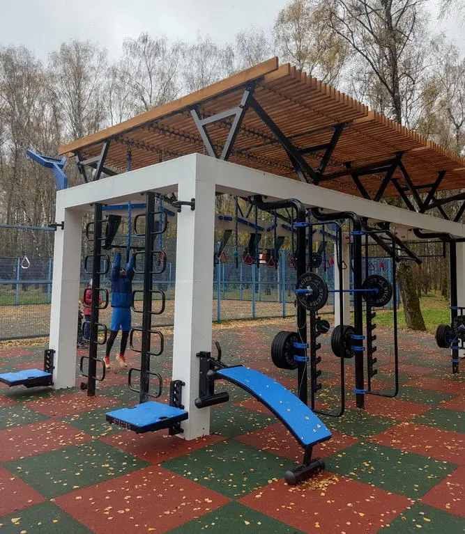 В общей сумме на спортивном комплексе «Центр Силы» установлено 25 различных элементов для разнообразных упражнений, что равносильно небольшому спортивному залу, позволяющему проводить полноценную круговую тренировку.