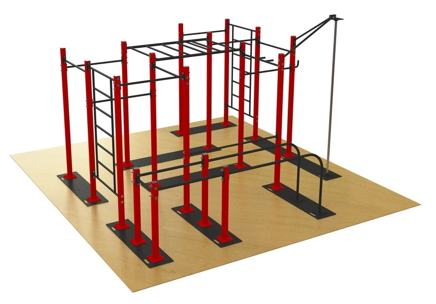 В комплексе установлен отдельный спортивный снаряд - пилон для Pole Sport! Так же предусмотрен крюк для крепления дополнительных приспособлений, например резиновых петель. Монтаж элементов спортивного комплекса осуществляется с помощью болтового соединения. К каждому опорному столбу по два болтовых соединения на один элемент комплекса.
