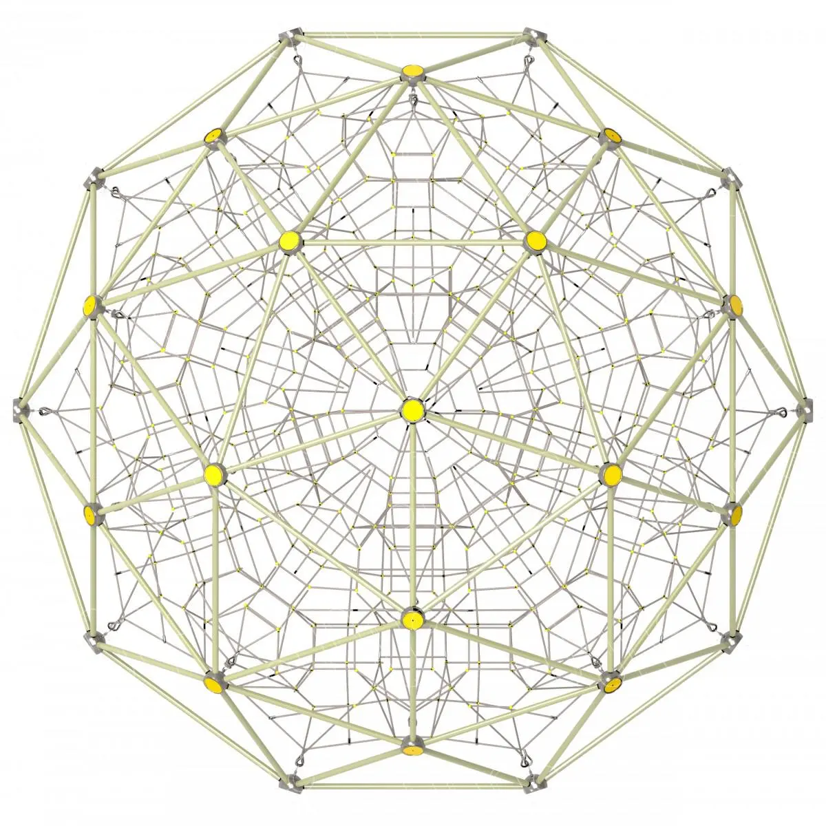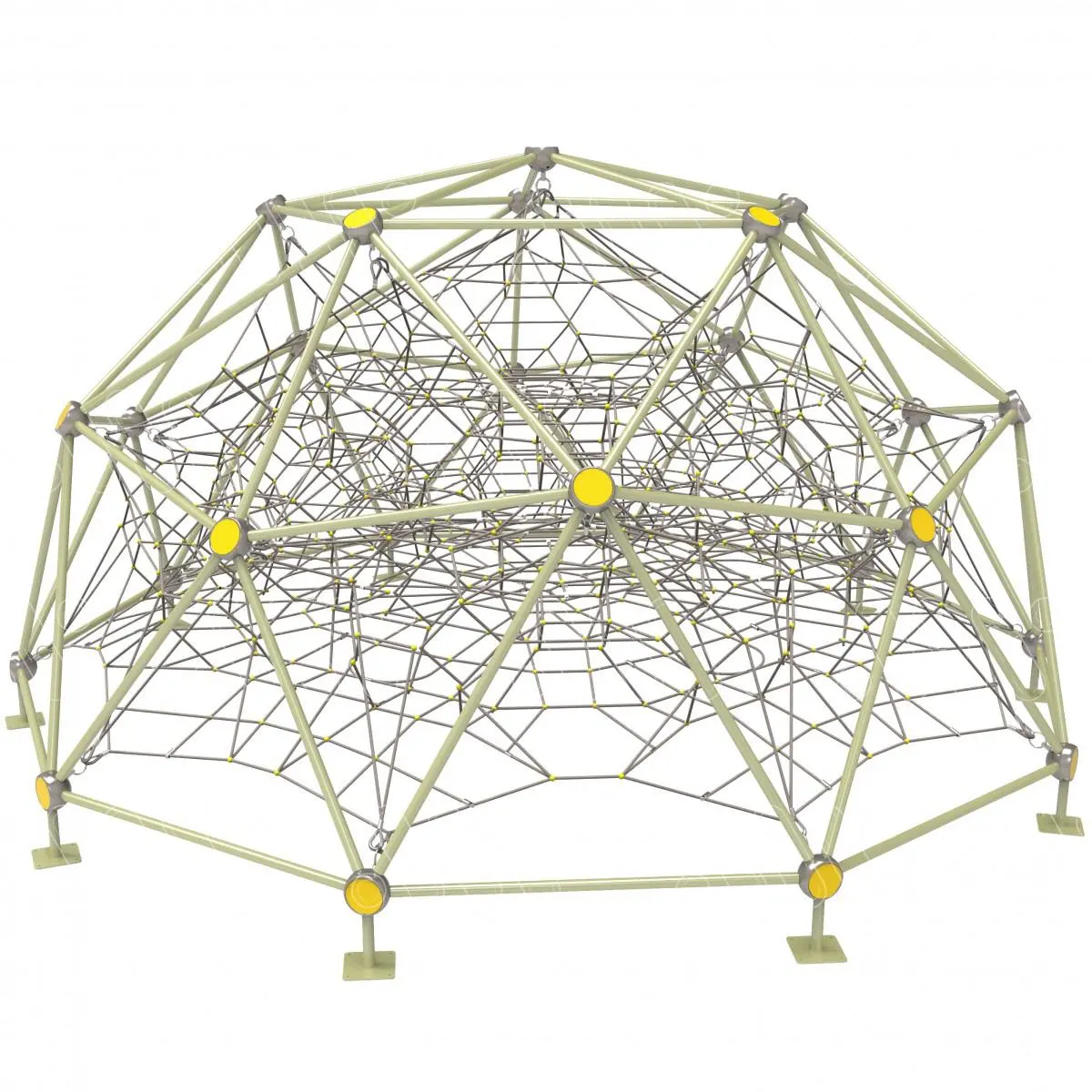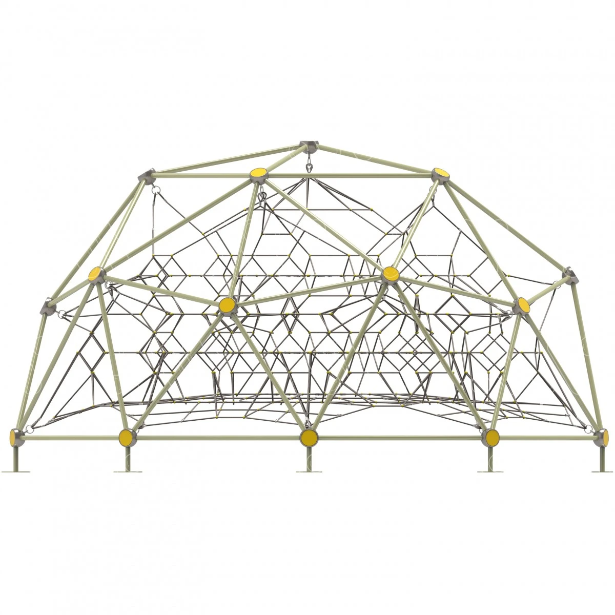 Канатная часть выполнена из армированного шестипрядного каната диаметром 16 мм, состоящего из полипропиленовых нитей и стальной проволоки. Х-образные и Т-образные соединения каната цельнолитые и выполнены из полиамида ПА6. Трубы каркаса соединяют литые алюминиевые полусферы с защитными стальными крышками. На металлические конструкции нанесено защитное порошковое покрытие. Конструкция поставляется в разобранном виде, готовая к монтажу.
