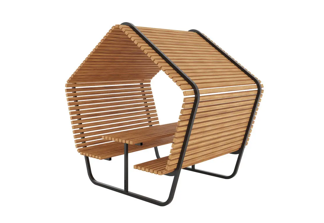Такая уличная беседка подойдет для установки в парках, скверах и на территории частных домов. Высокое качество и интересный дизайн изделия сделает пребывание на свежем воздухе комфортным и приятным.