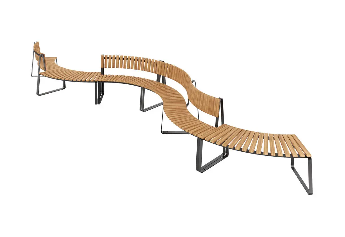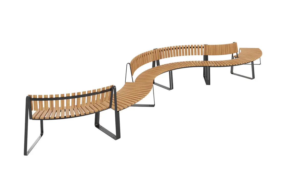 Парковая лавочка “Змейка” хорошо подходит для благоустройства современных жилых комплексов, где есть спортивные площадки, а также для городских парков.