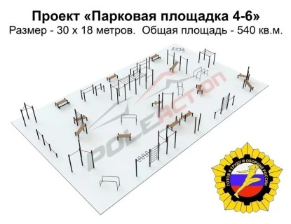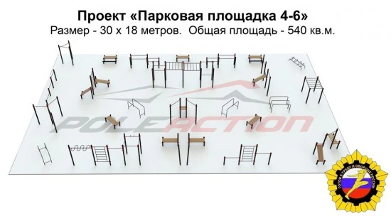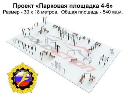 Данный проект парковой площадки укомплектован спортивными комплексами:
