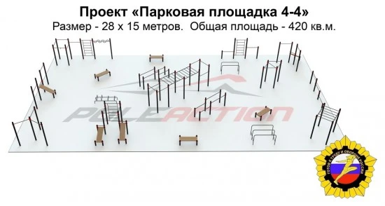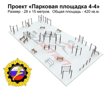 Данный проект парковой площадки укомплектован спортивными комплексами: