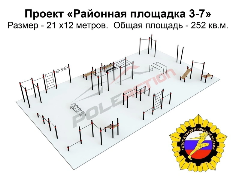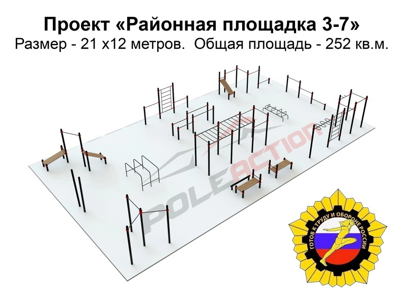Данный проект парковой площадки укомплектован спортивными комплексами: